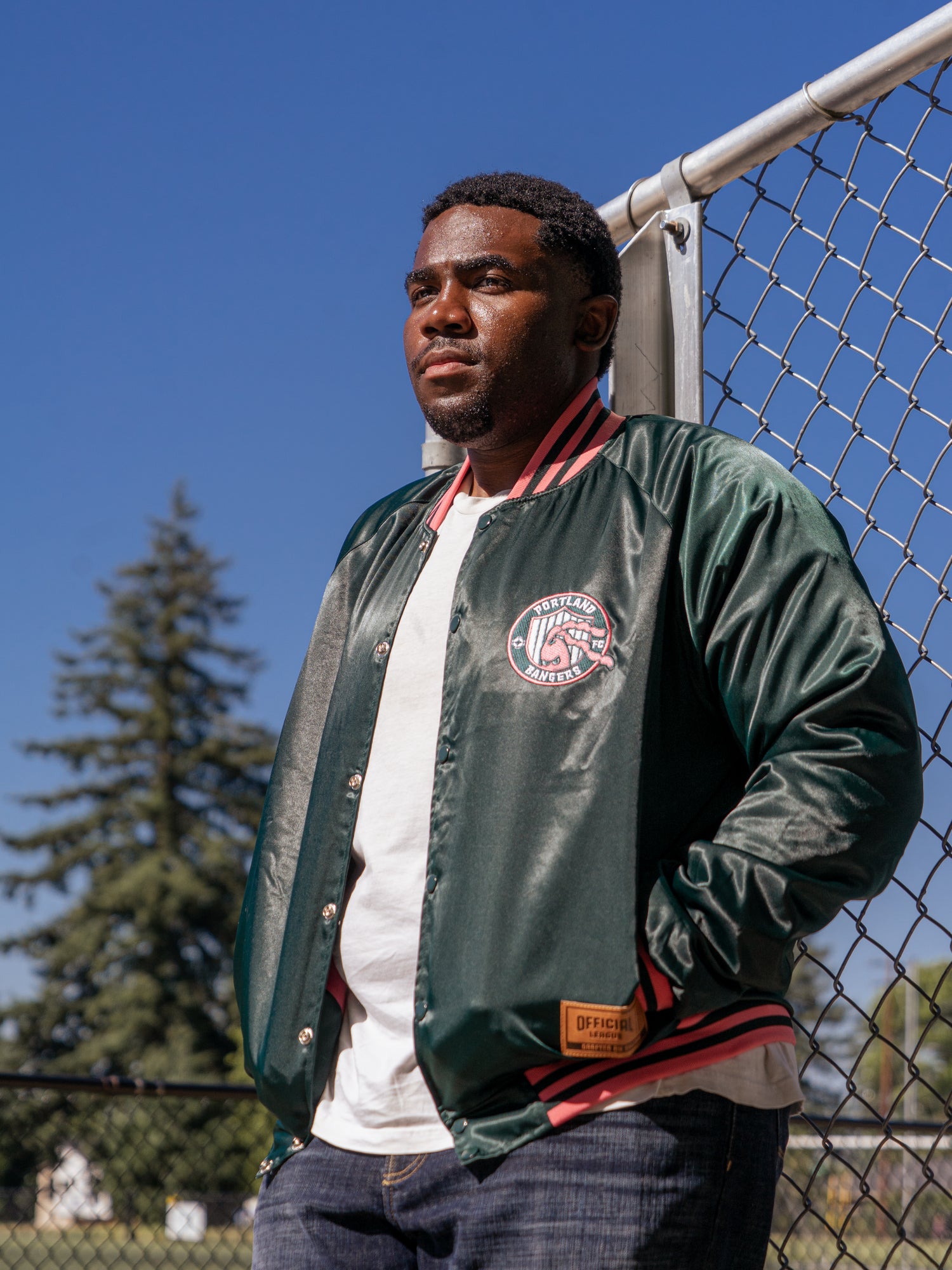 Official League x Portland Bangers Green Satin Jacket - Small is backordered and will ship as soon as it is back in stock.