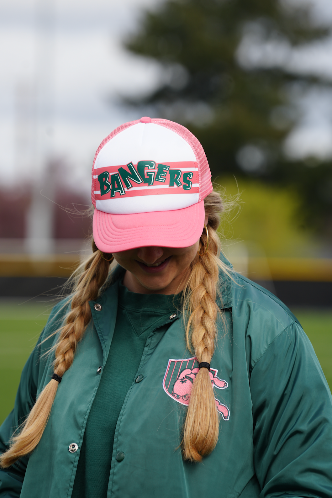 Official League x Portland Bangers Block White/Pink Foam Driver Hat